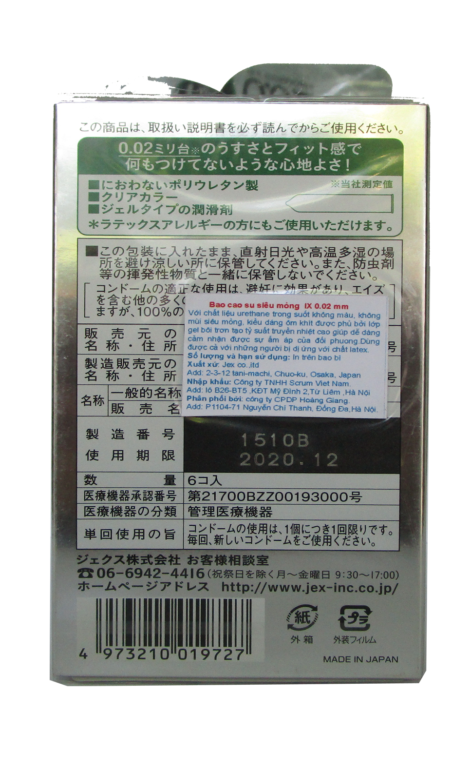 – Kiểm tra hạn sử dụng của bao cao su 0.02 mm Jex IX trước khi dùng.