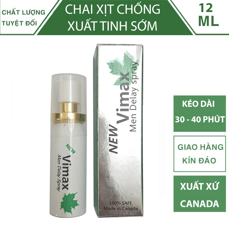 Chai xịt chống xuất tinh sớm Vimax Là sản phẩm tiên phong hàng đầu thế giới với chiết xuất hoàn toàn 100% từ các loại thảo dược thiên nhiên quý hiếm tạo ra Vimax Men Delay Spray dành cho quý ông bị xuất tinh sớm, an toàn tuyệt đối cho người sử dụng. Giúp các quý ông đánh tan lỗi lo “chưa đến chợ đã hết tiền”…