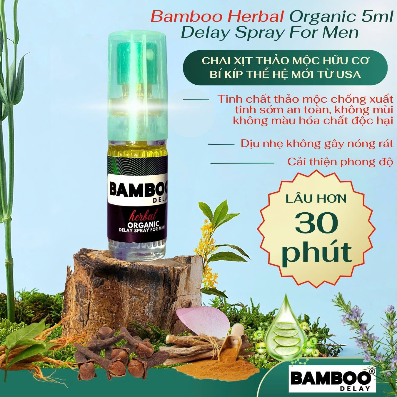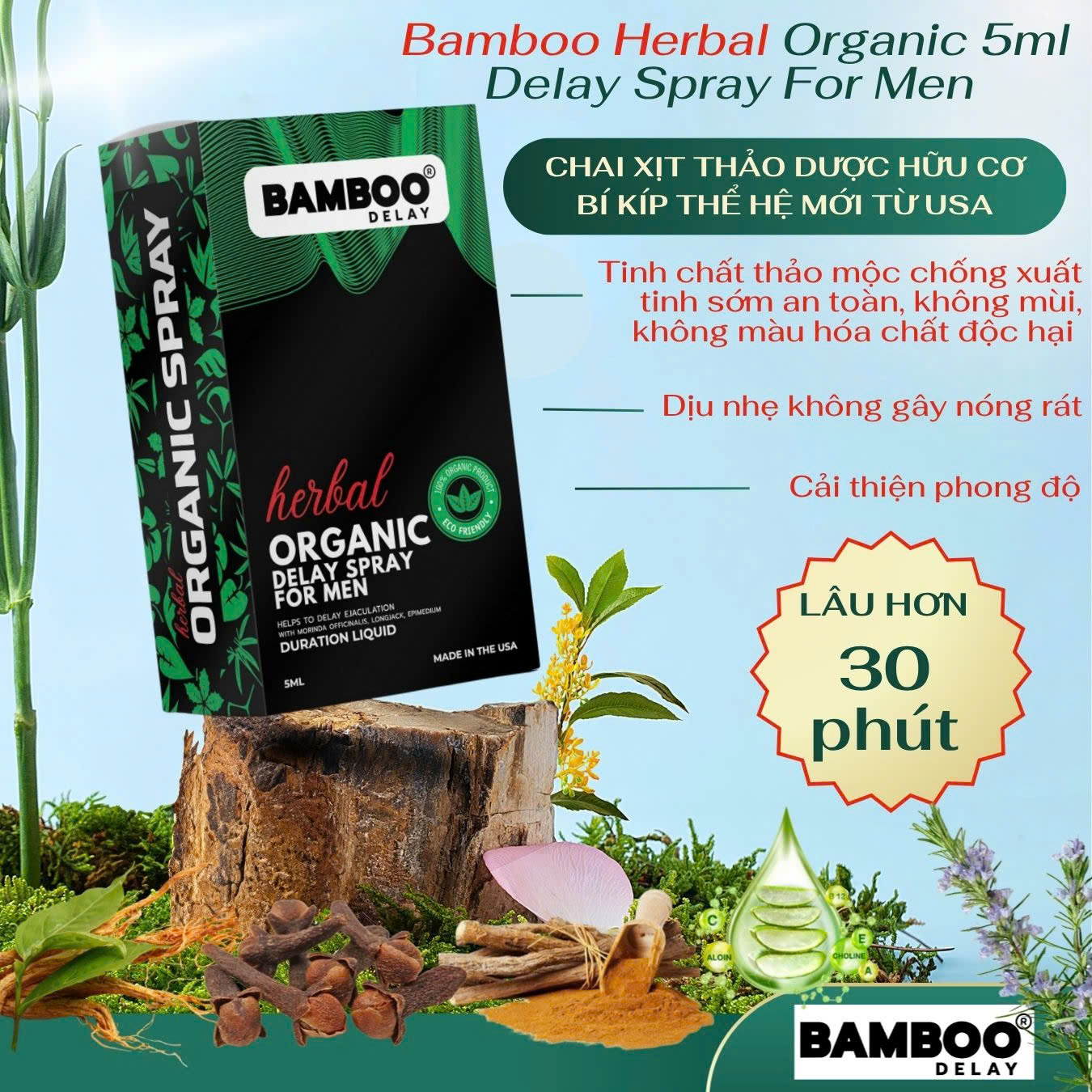 Chai Xịt USA Bamboo Herbal Organic Delay Spray For Men – Kéo Dài Thời Gian – 5ml