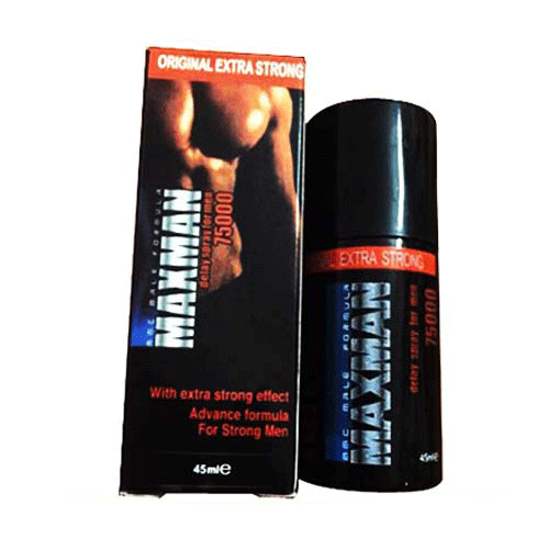 - Chai Xịt Maxman 75000 – Thuốc xịt chống xuất tinh sớm dạng chai xịt phun sương là dòng sản phẩm cao cấp có nguồn gốc xuất xứ từ Đức, giúp cho nam giới cải thiện sinh lý một cách hiệu quả và đáng kể.