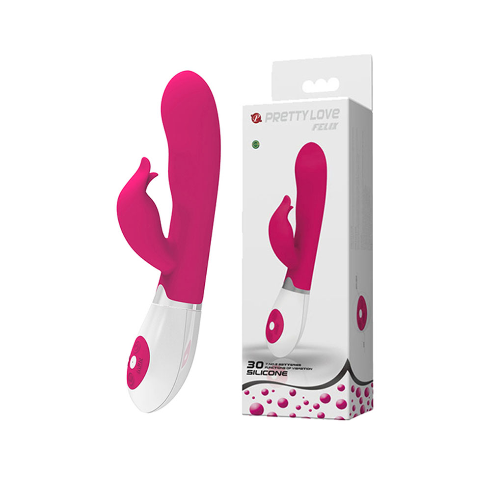 - Máy massage điểm G loại nhỏ Pretty love Felix là sự kết hợp giữ hai tông màu trắng và hồng chủ đạo, thiết kế phần đầu nở lớn, phần phụ vương dài, là kết cấu hoàn hảo để cùng lúc chạm tới điểm G trong và massage điểm G ngoài cùng một lúc.