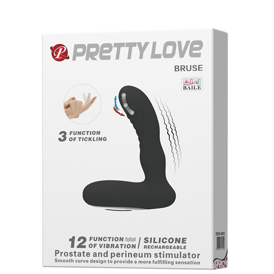 Pretty Love Bruse là máy massage tuyến tiền liệt cao cấp từ thương hiệu Baile với 12 chế độ rung mạnh mẽ + 3 chức năng Tickling kích thích điểm P và tầng sinh môn đồng thời. Sản phẩm làm từ silicone y tế an toàn, chống nước hoàn hảo, sạc USB tiện lợi, bảo hành 6 tháng chính hãng.