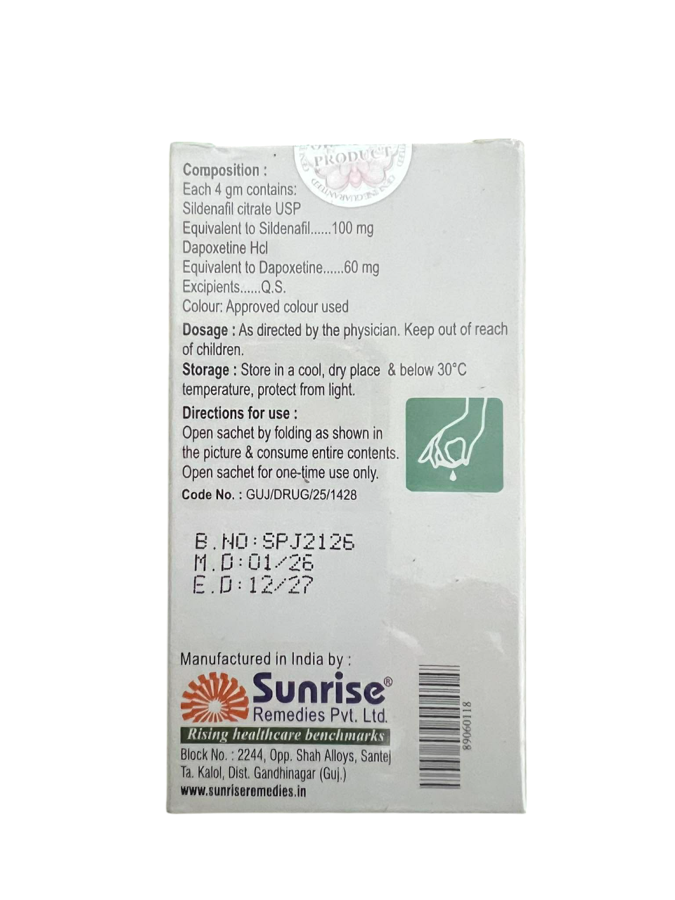 - Dapoxetine 60mg: Thành phần được FDA chấp thuận để hỗ trợ kiểm soát xuất tinh sớm, giúp kéo dài thời gian quan hệ, cho cả hai cùng đạt đến cực khoái.