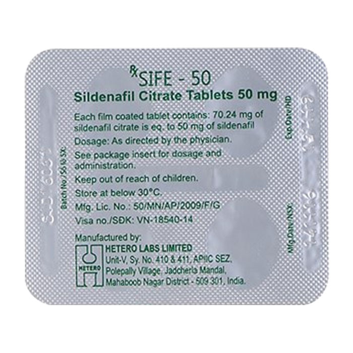 Thuốc cường dương Sife 50mg – Sildenafil dùng để điều trị các rối loạn cương dương, là tình trạng không có khả năng đạt được hoặc duy trì cương cứng đủ để thoả mãn hoạt động tình dục. Sildenafil chỉ có tác dụng khi có kích thích tình dục kèm theo.