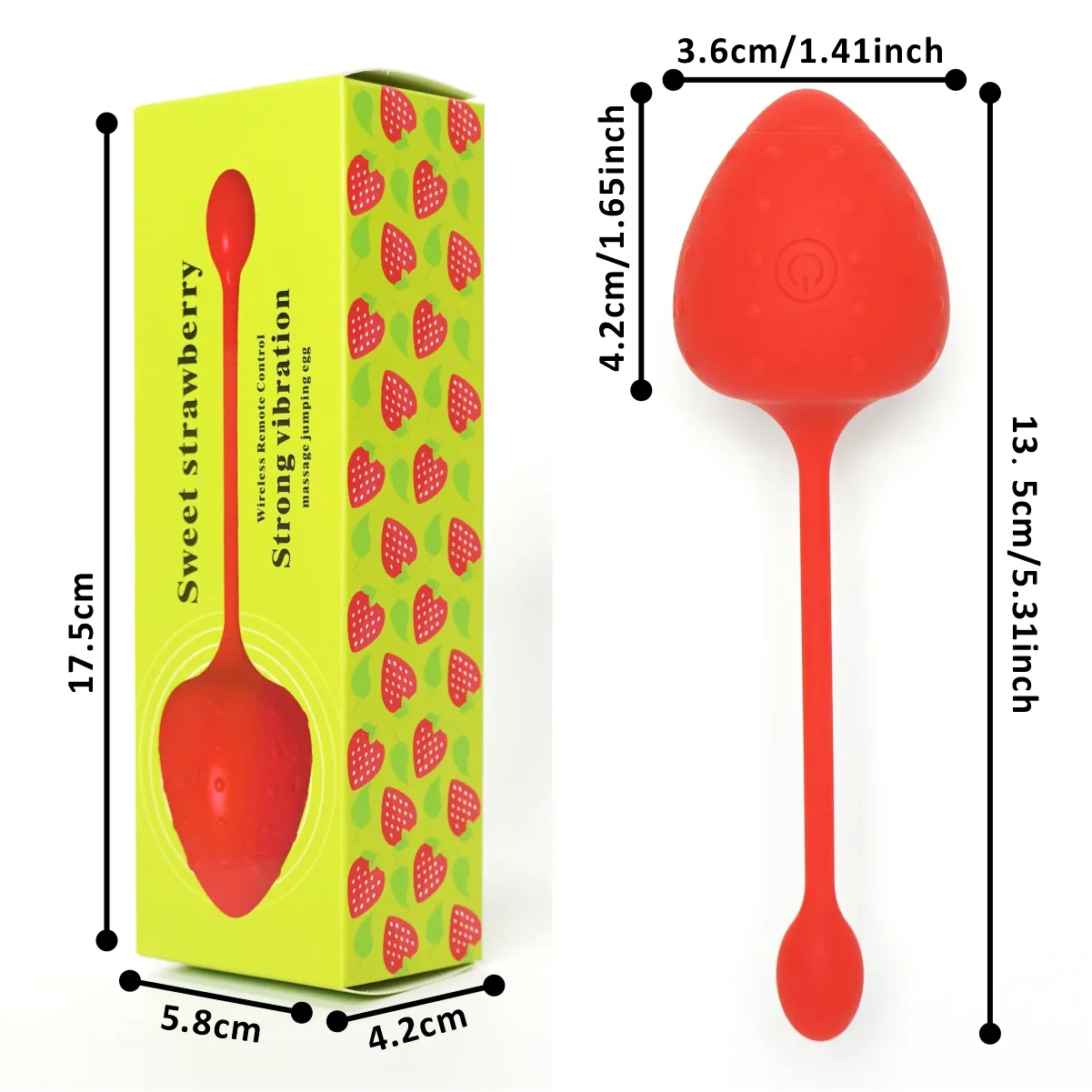 Trứng rung điều khiển từ xa hình trái dâu được thiết kế xinh xắn, y chang như một quả dâu tây nhỏ gọn với kích thước 14*3,6cm. Sản phẩm này không chỉ mang lại vẻ ngoài dễ thương mà còn rất tiện lợi cho việc sử dụng và mang theo. Được làm từ chất liệu Silicon mềm mịn, trứng rung mang lại cảm giác dễ chịu và thoải mái khi tiếp xúc với da, không gây kích ứng hay khó chịu.